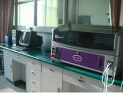 主要技術指標:48根針的點樣頭一次可制備90張25×75mm高密度芯片,加裝Stacker最多可加裝70塊96或384孔微孔板;精密的線性馬達在X、Y、Z軸精度達到1μm;實心針以及空心針采用鎢作為材料,高精度,低摩擦;玻片為真空固定,由6個獨立的泵進行控制;可以加裝Peltier冷卻器,溫度保持在9–10℃;儀器內部的空氣正壓和HEPA過濾裝置可以隔絕99.999%≥0.3μm的微粒,使整個點樣環境保持潔凈無塵;兩種不同的洗液對針頭進行高壓高流速清洗,并用壓縮空氣干燥;能自動偵測洗液和廢液瓶中的液體量;可加裝濕度器以保持點樣環境的濕度;靈敏度高:可測£0.1熒光分子/mm2;增大目標樣本的光量收集,并減少收散射光所造成的背景值,光電倍增管及激光管具有功率調整,以達到最佳的訊噪比值表現;精進的分析軟件;設計人性化,圖像自動疊加,無誤差,自動尋找點(Auto Align),自動形成各項分析測量的Scatter Plot,自動接受從其它掃描儀來的影象。